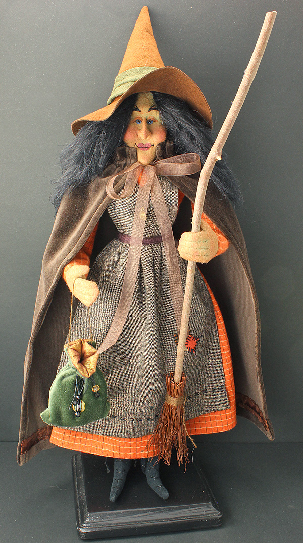 (The exact Elmira available is shown in the photograph. We use no molds for their faces, making each one truly one-of-a-kind. Elmira, and all her accessories (with exception of her pewter spider charm and doll stand), are made in our workshop. She is signed by the artists.)