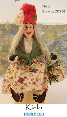 A representative of each lady elf character is shown. We use no molds for our figures. Each face is handsculpted, one at a time, which means each face is slightly different and will not look exactly like the face in the photo. This is what makes each handmade doll unique.